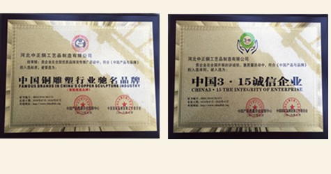 河北中正銅工藝品制造有限公司是一家專(zhuān)業(yè)制作鑄銅鐘的廠(chǎng)家,是具有獨(dú)立設(shè)計(jì)、鑄造、制作施工能力的單位。擁有完善的,大型的,先進(jìn)的銅鐘制作設(shè)備,并由多位經(jīng)驗(yàn)豐富的高級(jí)鑄造技師指導(dǎo)生產(chǎn)及制作。公司主要鑄造銅鐘,青銅鐘,大型銅鐘,寺廟銅鐘,學(xué)校銅鐘,鐵鐘等,可按客戶(hù)提供銅鐘圖片訂做加工銅鐘,銅鐘做工細(xì)致,精雕細(xì)琢,鐘聲洪亮,對(duì)質(zhì)量保證,負(fù)責(zé)。 我廠(chǎng)手續(xù)齊全,具有國(guó)辦排污許可證,可以正常、環(huán)保的制作產(chǎn)品...